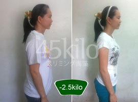 I am writing in to tell you that I have seen some amazing results with 45kilo. i just try 1 box and I have already lost a total of 2.5 kg, and my body shape have big change, i use to have big tummy and big arm, but just 2 weeks my tummy become small and my body look firm and nice, I couldn't believe it, i will share with all my friends and family, thanks a lot, i really look good now.